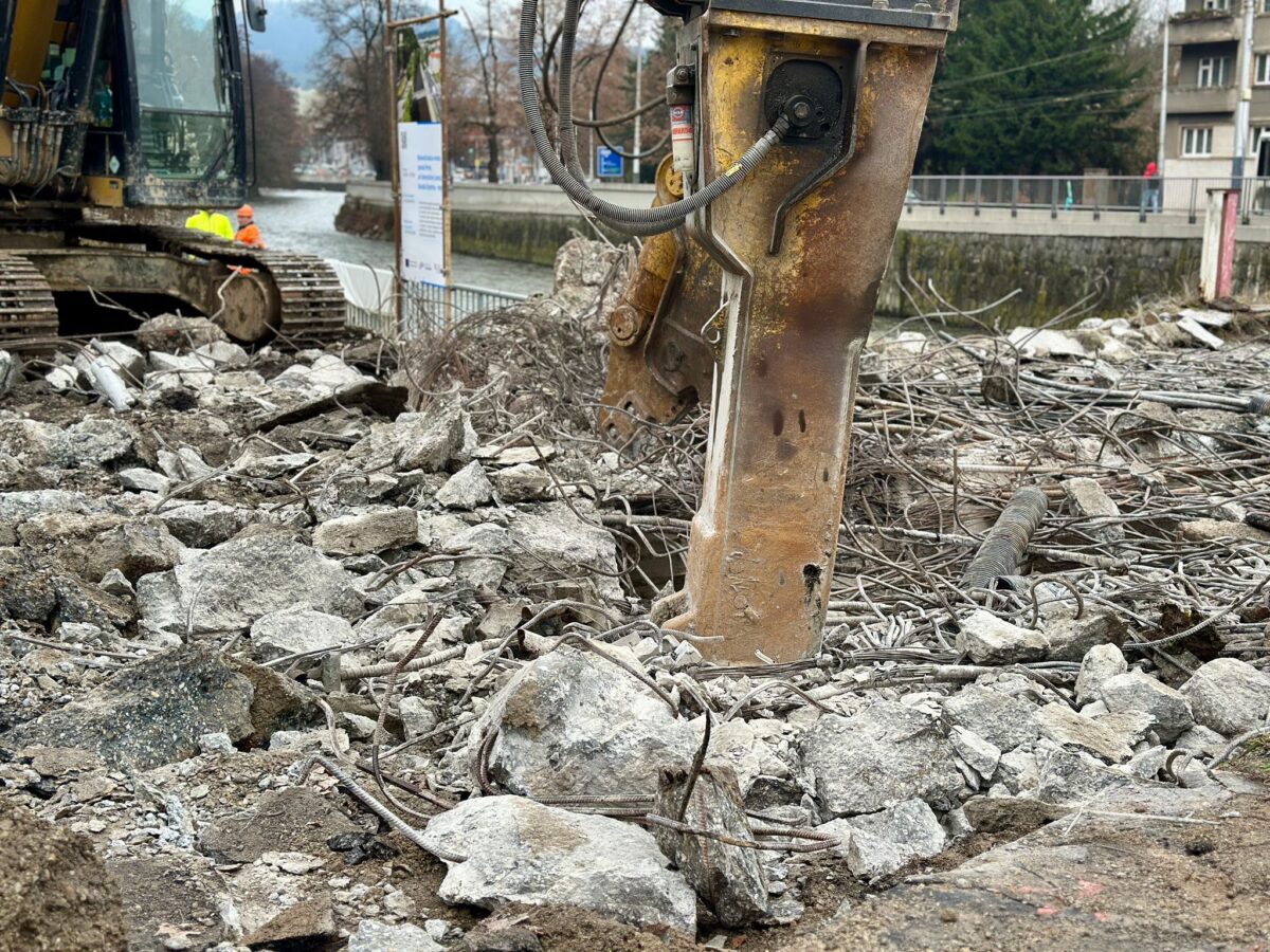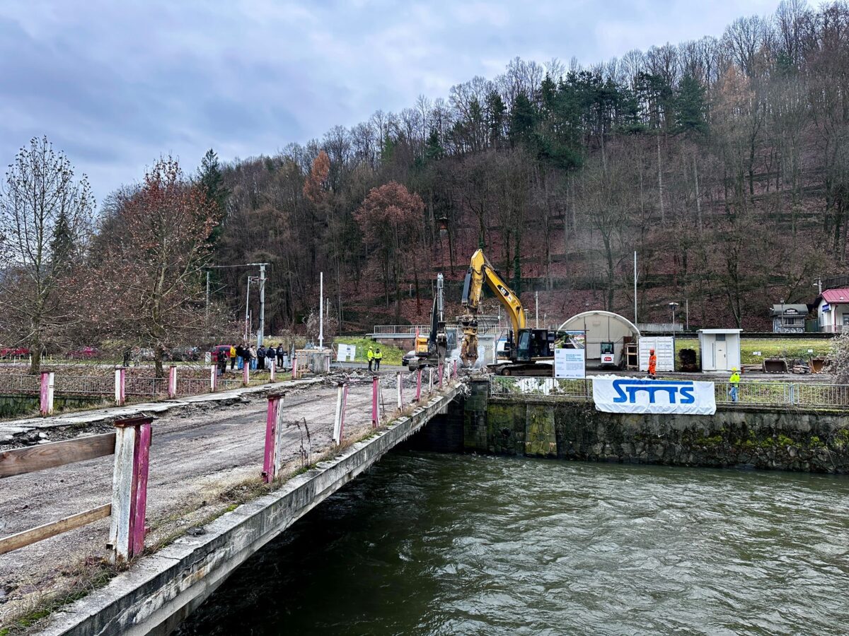 „Samotné búranie vychádza z Povodňového plánu zabezpečovacích prác. Celý proces búrania mosta je možné uskutočniť len v prípade nízkej hladiny Hrona. Dnes môžeme začať s búracími prácami, ktoré by mali trvať približne sedem dní. Nosnú konštrukciu mosta prebúrame v troch priečnych rezoch. Spadnutú nosnú konštrukciu budeme hydraulickými nožnicami rozrušovať na kusy, ktoré budeme bagrom vyťahovať a presúvať na parkovisko. Tam budú zhodnotené drvením cez recyklačnú frézu,“ hovorí riaditeľka spoločnosti SMS a. s. Eva Fízeľová.