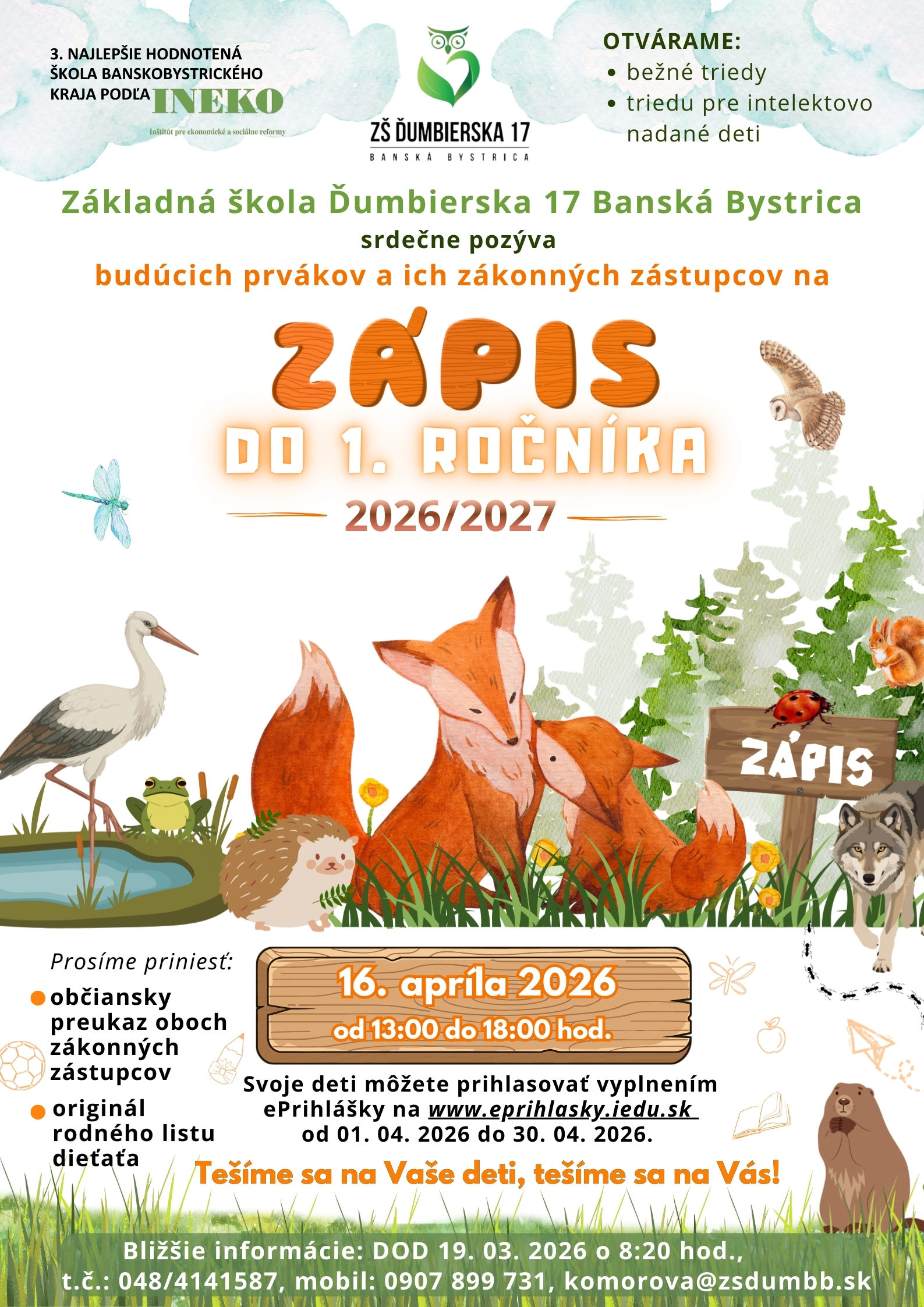 - ZŠ Ďumbierska 17 – 16. 4. 2026 od 13:00 – 18:00 hod.