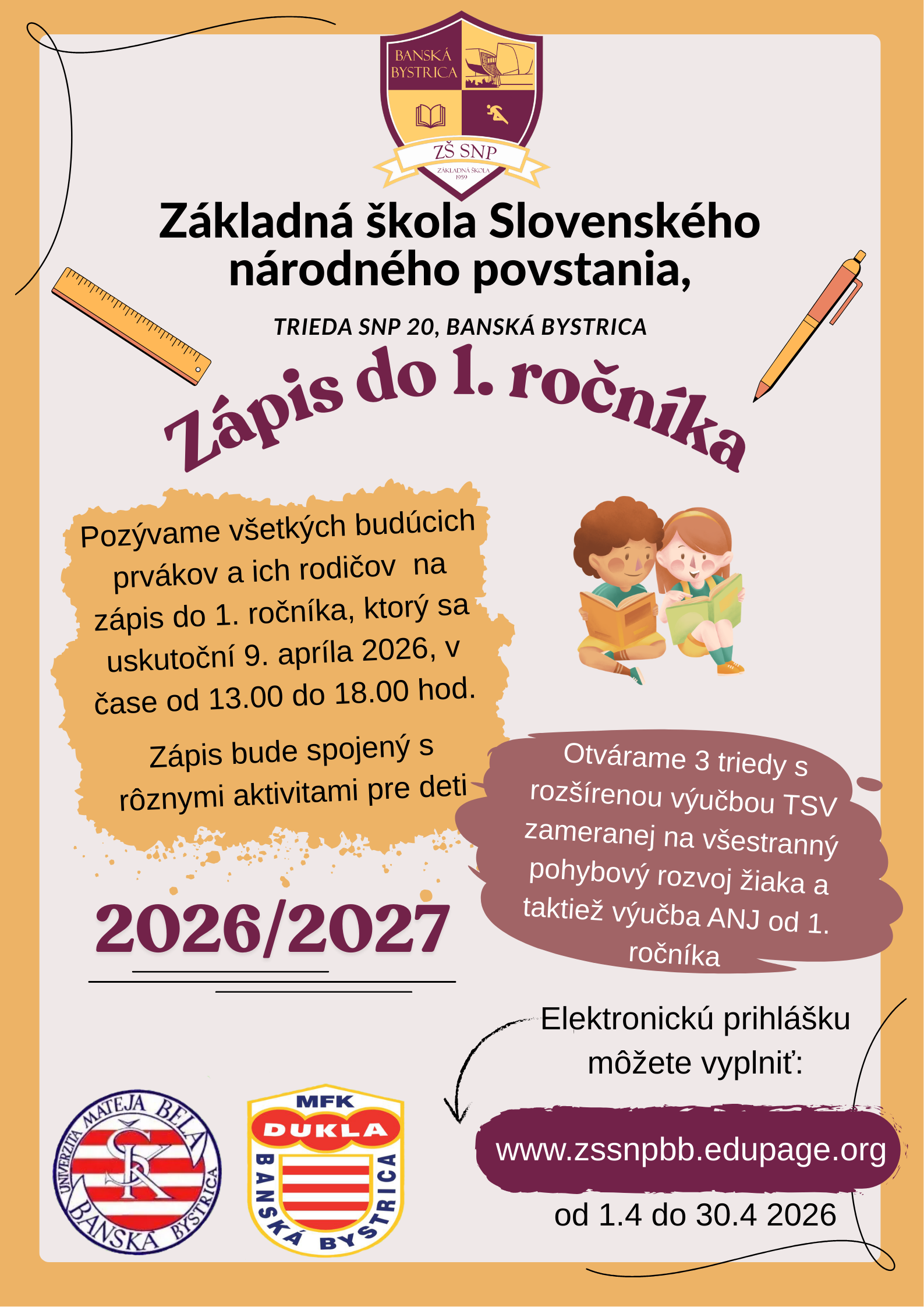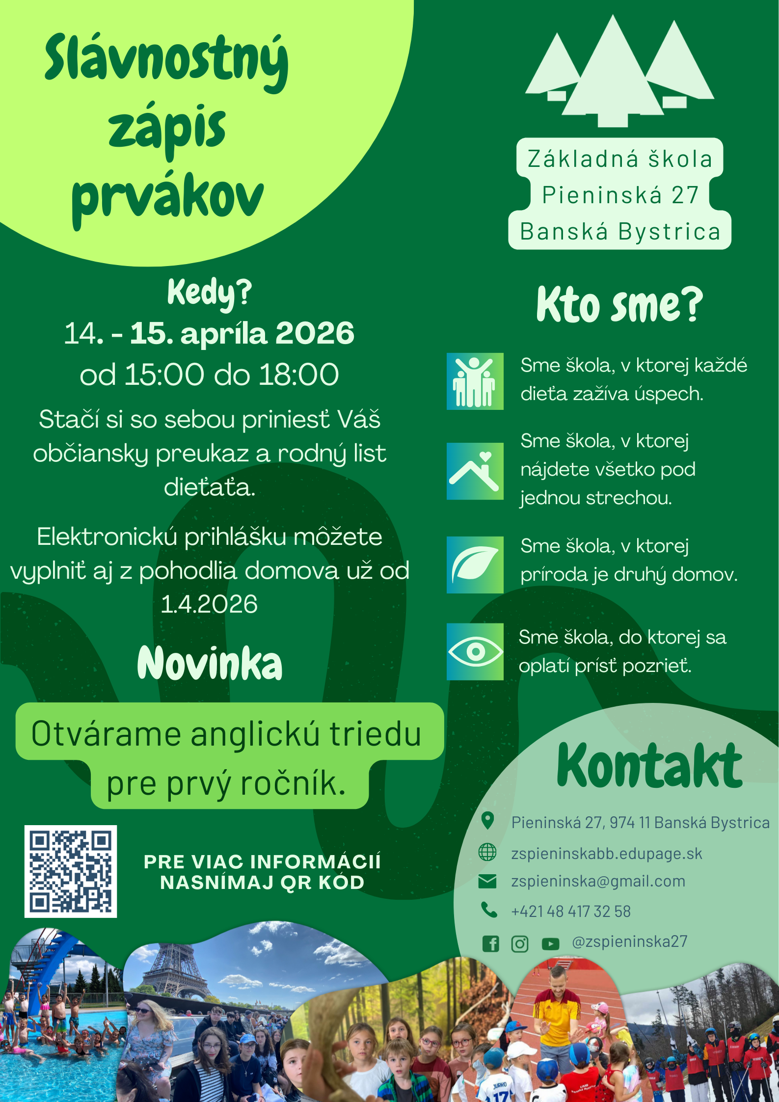 - ZŠ Pieninská 27 – 14. 4. a 15. 4. 2026 od 15:00 – 18:00 hod.