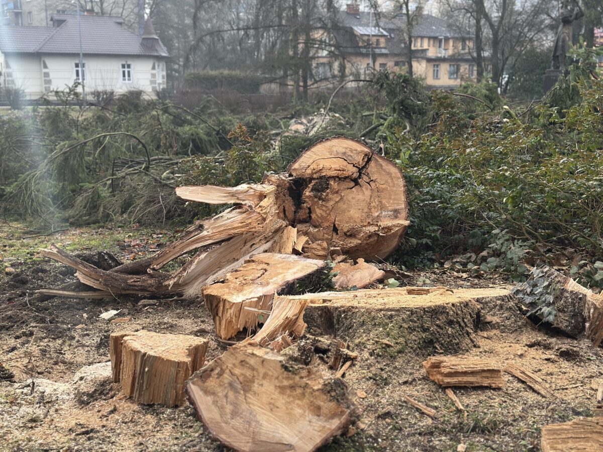 „Bolo potrebné sledovať, či v dutinových stromoch, ktoré v parku sú, náhodou nebudú netopiere alebo hniezdiace vtáky, ktoré by bolo potrebné zachraňovať. Počas celého výrubu sme boli prítomní a nezistili sme prítomnosť vtákov alebo netopierov v stromoch alebo na konároch,“ dopĺňa za environmentálny dozor Ján Šmídt,