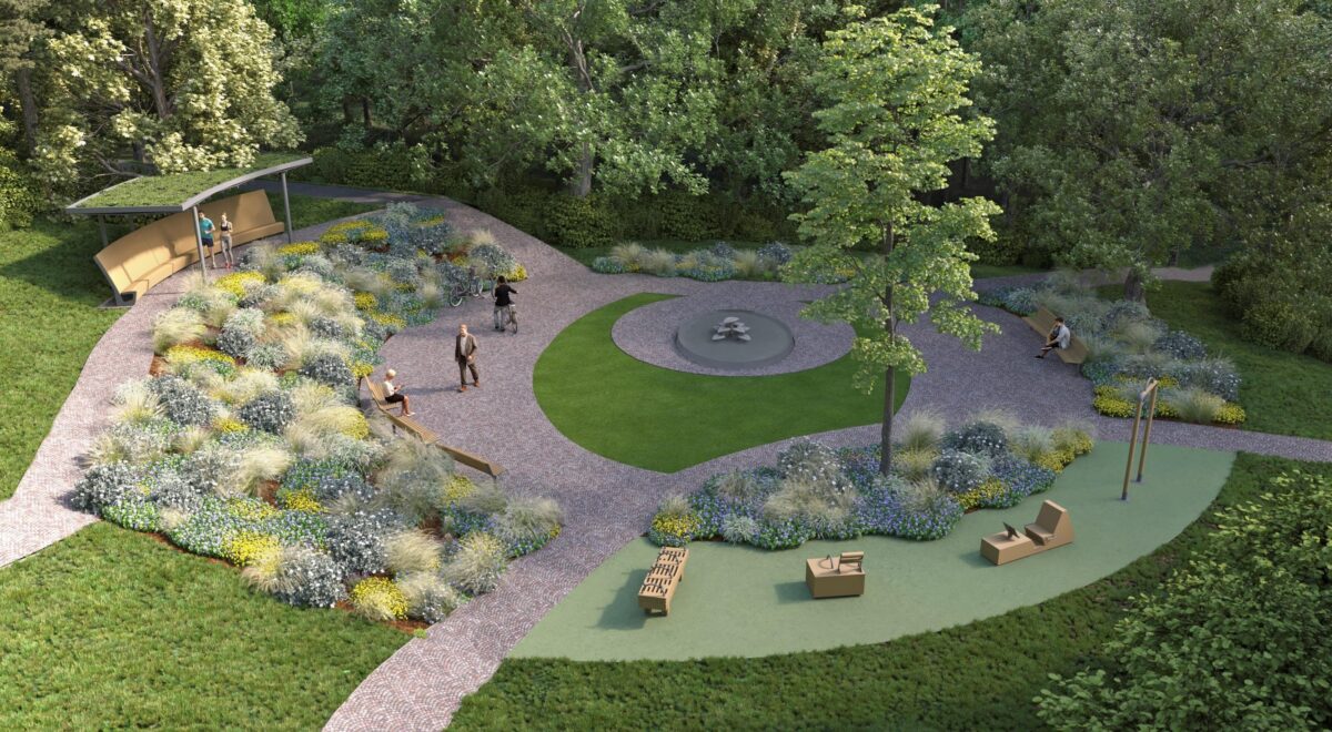 V celom priestore sa nachádza celkovo 421 kusov stromov, pričom v prvej etape je určených na výrub po dohode s obyvateľmi 50 kusov drevín. Niekoľko drevín bude presadených do vhodnejšej časti územia. V rámci prvej etapy bude vysadených 224 kusov stromov, 2386 ks krov a 7489 kusov trvaliek.