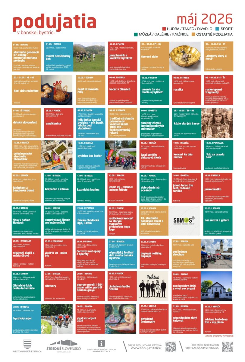 Mesačný prehľad podujatí v meste Banská Bystrica a okolí na mesiac MÁJ 2026.