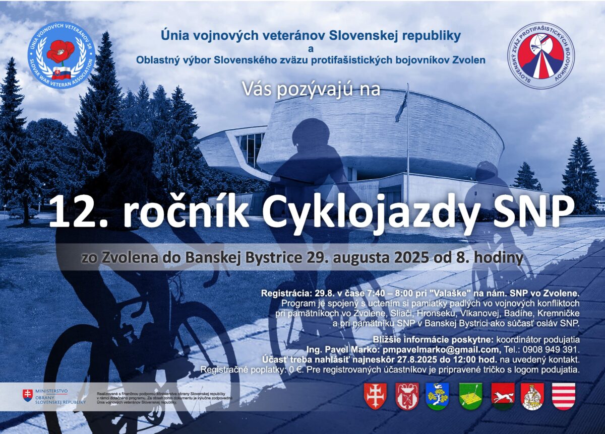 Pozývame Vás na 12. ročník Cyklojazdy SNP zo Zvolena do Banskej Bystrice 29. augusta 2025 od 8:00.