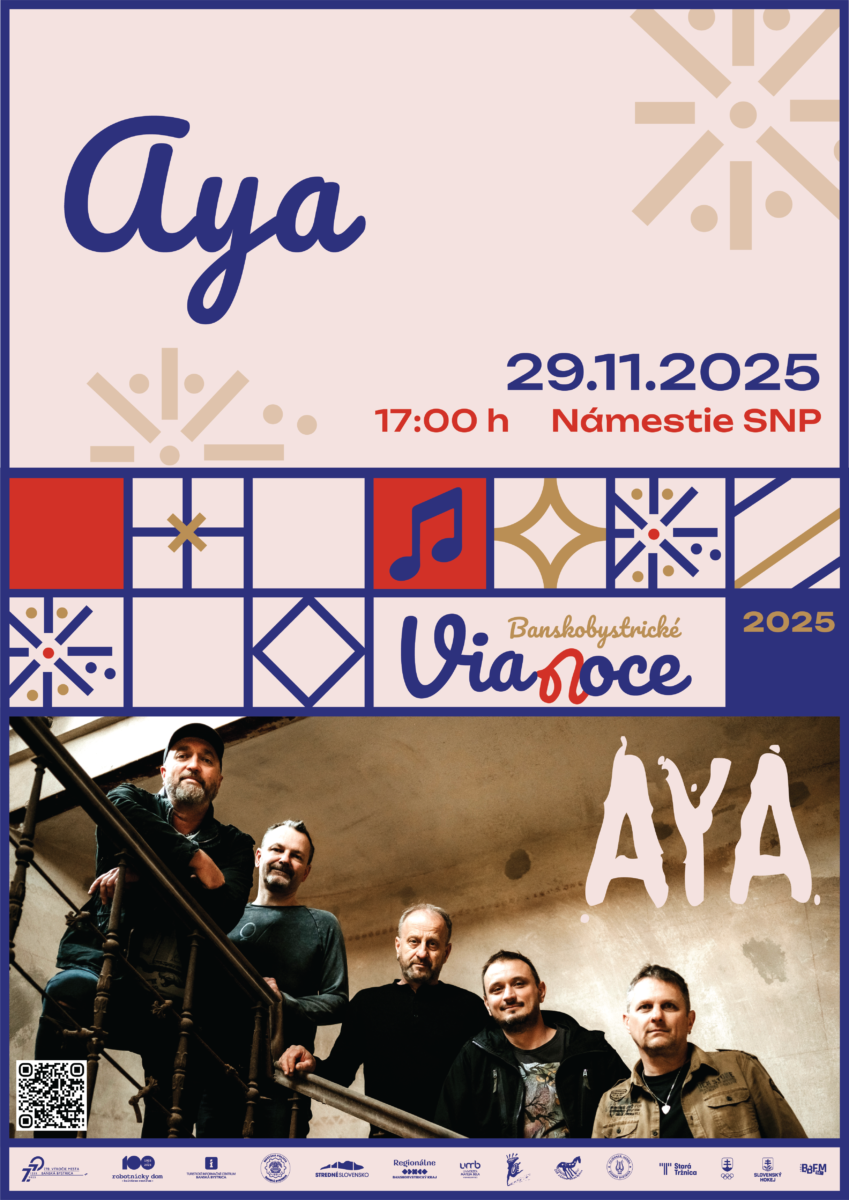 Pozývame Vás na predvianočný koncert legendárnej žilinskej rockovej kapely Aya v sobota, 29. decembra 2025 o 17:00 hod na Námestie SNP v Banskej Bystrici.