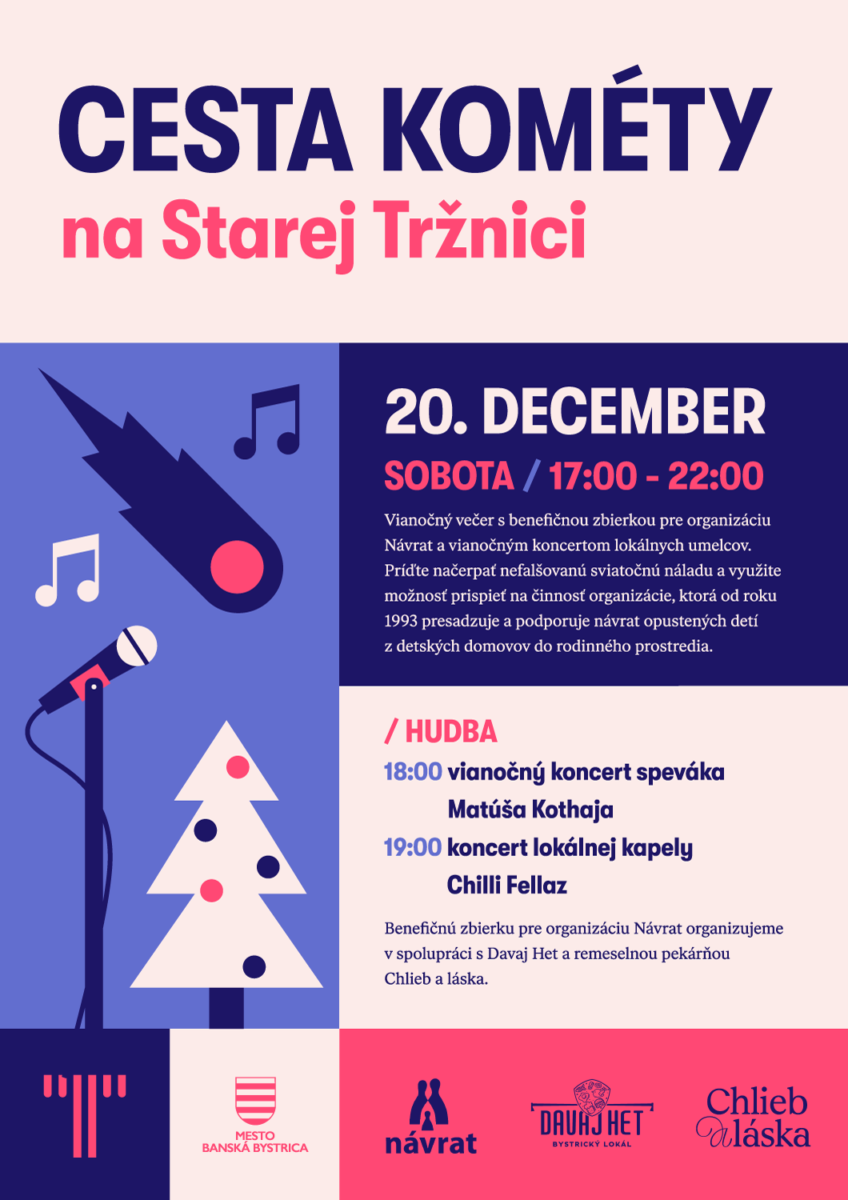 V sobotu 20. decembra sa na vás v alejke tešíme už od 17:00 a spoločne si užijeme Cestu kométy.