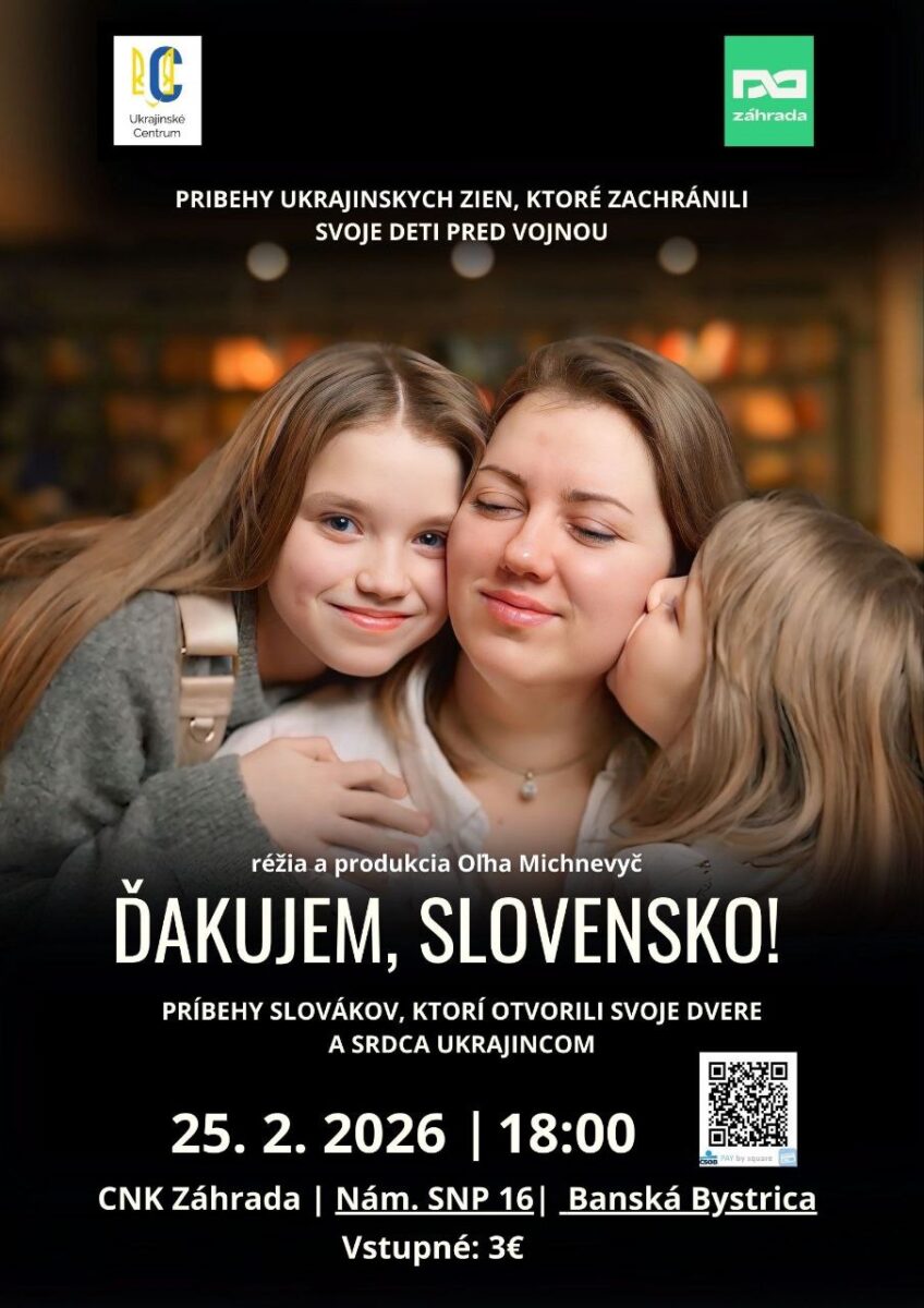 Pozývame Vás na premietanie filmu Oľhy Michnevyč „Ďakujem Slovensko!“ a živú panelovú diskusiu s tými, ktorí už štyri roky stoja pri Ukrajine.
