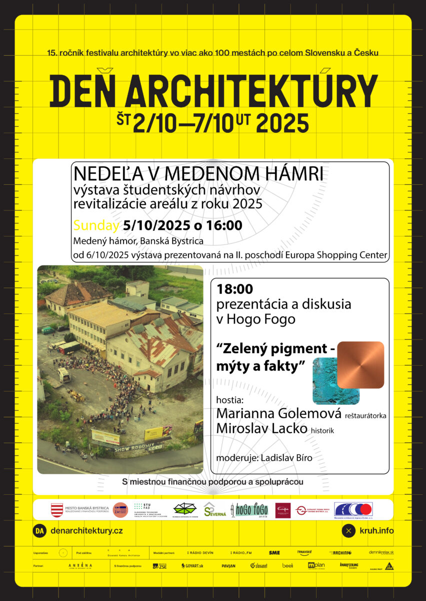 Výstava “Vízie premeny Medeného hámra – študentskými očami” nie je zďaleka prvou výstavou študentských návrhov revitalizácie tohto vzácneho areálu, ktorý dodnes tvorí aj viacero chránených národných kultúrnych pamiatok (hiarty, dielne a vodný náhon vo vlastníctve mesta a haly laboratórií a elektrolýzy v súkromnom vlastníctve). Pri príležitosti 15. ročníka česko-slovenského festivalu Deň architektúry ide o výber najnovších študentských prác, ktoré vznikli v roku 2025 na pôde Fakulty architektúry a dizajnu STU v Bratislave a Technickej univerzity vo Zvolene. Budúci architekti, architektky a dizajnérky zo Slovenska, ale vďaka programu ERASMUS aj z Poľska, Ukrajiny, Francúzska, Talianska či Turecka sa sústredili predovšetkým na konverziu objektov hiartov a dielní, ale aj na potenciál možných verejných priestorov či halu elektrolýzy.