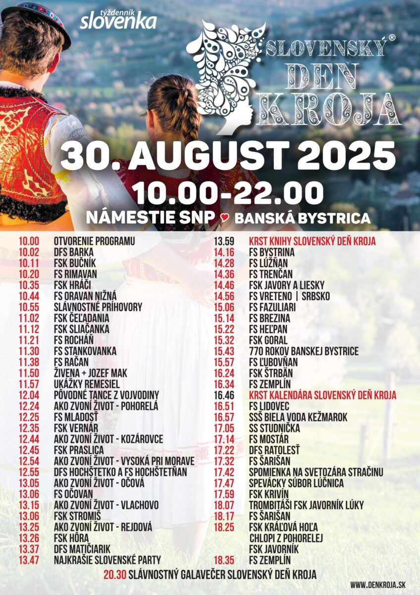 Čaká vás deň plný tradícií, tancov, spevu, krojov a skvelých zážitkov.