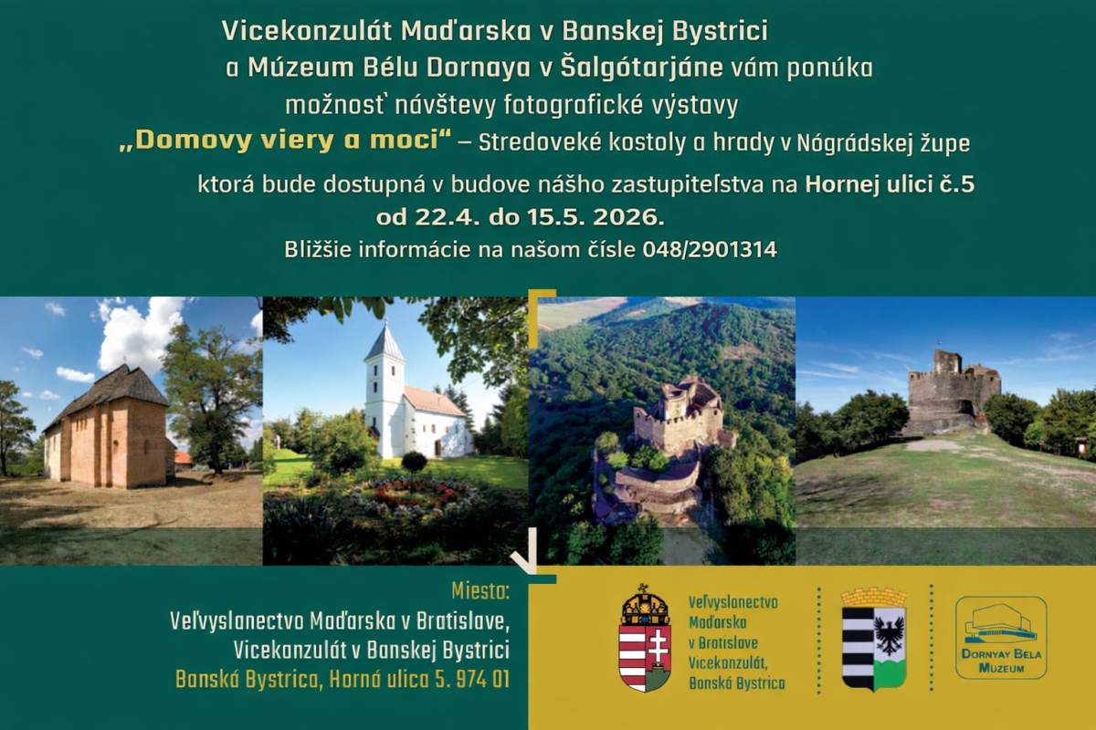 Vicekonzulát Maďarska v Banskej Bystrici a Múzeum Bélu Dornaya v Šalgotarjáne vás pozýva na výstavu „Domovy viery a moci.“