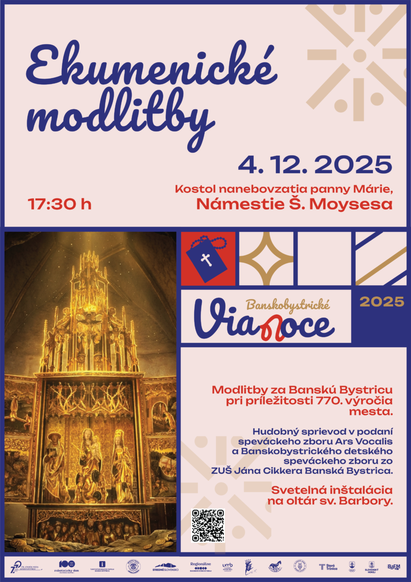 Banská Bystrica si v tomto roku pripomína 770. výročie udelenia mestských výsad. V duchu tohto významného jubilea sme mohli prežiť Dni mestskej kultúry či Radvanský jarmok. Z iniciatívy kresťanov nášho mesta bude predvianočný čas patriť aj ekumenickým modlitbám v Kostole nanebovzatia Panny Márie. O hudobný sprievod sa postará banskobystrický zbor Ars Vocalis a Banskobystrický detský spevácky zbor zo ZUŠ J. Cikkera.