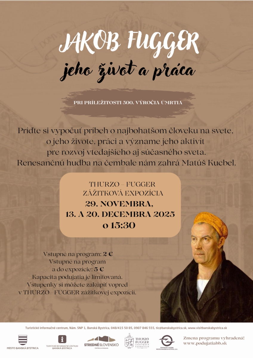Vstupenky odporúčame zakúpiť vopred v THURZO – FUGGER zážitkovej expozícii.