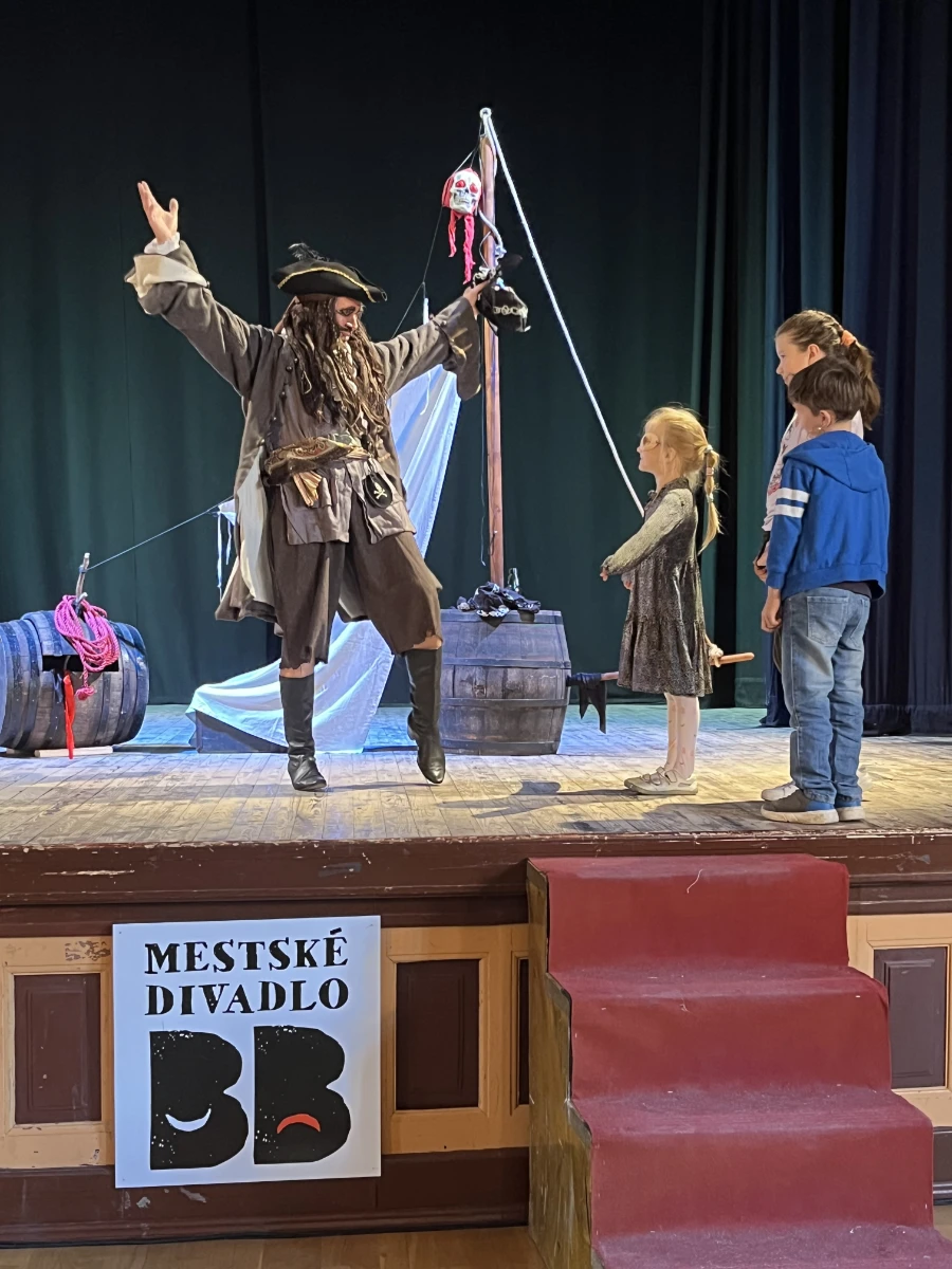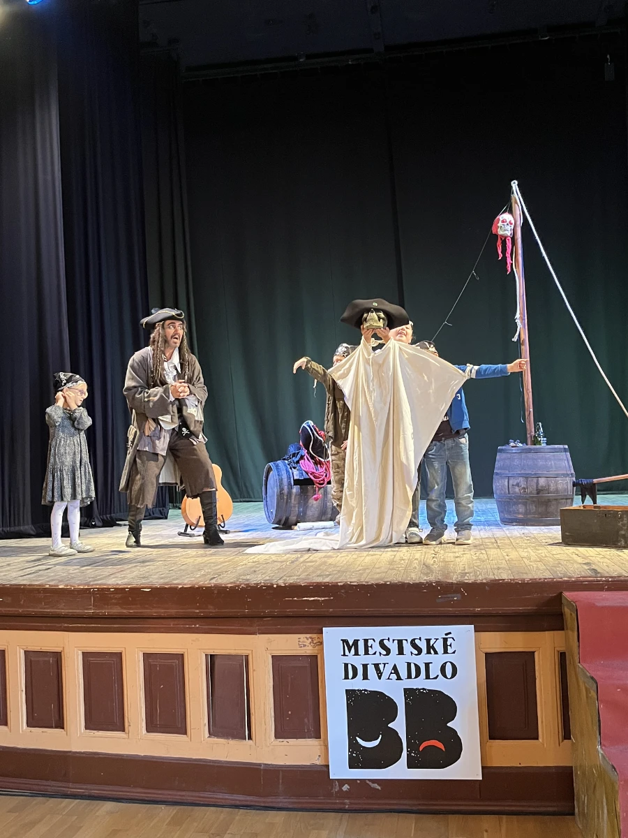 KRAJINA PIRÁTOV je interaktívna hra na vznik štátu, v ktorej sa deti dozvedia, čo sú to štátne symboly, ako vzniká ústava a hymna a prečo je potrebné aby občania volili. Piráti nájdu na ostrove stratených duší poklad pirátskeho kapitána a v ňom návod ako krajinu pirátov vytvoriť. Musia pri tom splniť mnoho náročných úloh spoločne. Pre divákov od 6 rokov.