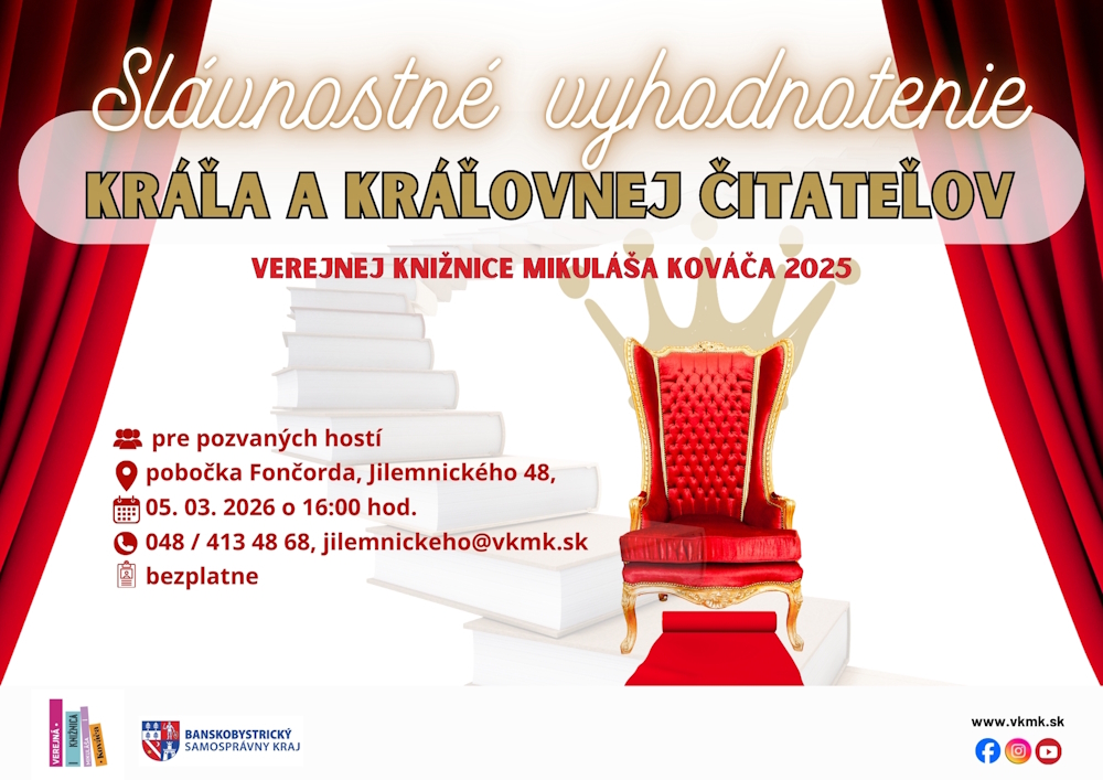 Slávnostné vyhodnotenie kráľa a kráľovnej čitateľov Verejnej knižnice Mikuláša Kováča: