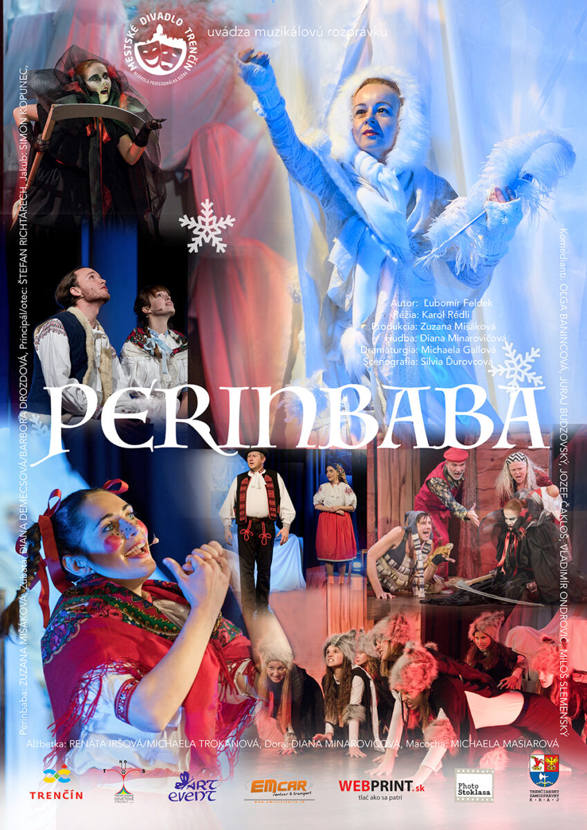 V rozprávkovom muzikáli Perinbaba vás budú príbehom Jakuba a Alžbetky sprevádzať láskavá Perinbaba, kmotra Zubatá, veselí komedianti so svojimi kúzlami a mnohé iné zábavné rozprávkové postavy. Rodinná inscenácia v réžii Karola Rédliho s hudbou Diany Minarovičovej všetkých príjemne očarí a prenesie do rozprávky, kde dobro vyhráva a zlo je spravodlivo potrestané. Zapozerajte a započúvajte sa s nami do príbehu lásky, ktorá je silnejšia než smrť. Muzikál Perinbaba je určený všetkým vekovým kategóriám (od 5 rokov). Dĺžka predstavenia je 60 minút. V predstavení je použitý stroboskop a para.