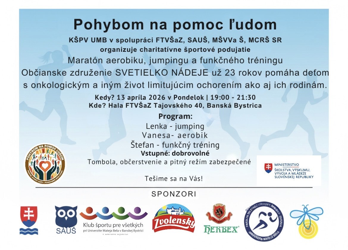 Pozývame Vás podujatie Pohybom na pomoc ľudom.