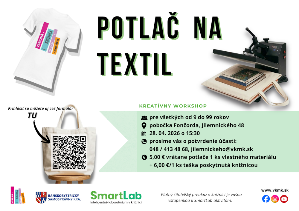 SmartLab – inteligentné laboratórium vo Verejnej knižnici Mikuláša Kováča – Kreatívny workshop – Potlač na textil: