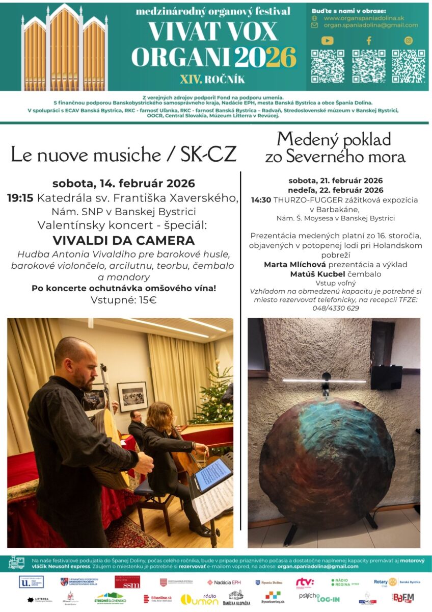 Februárové podujatia, na medzinárodnom organovom festivale Vivat vox organi, otvárajú 14. ročník tohto podujatia. Spojenie autentickej Vivaldiho hudby v katedrále, s ochutnávkou omšových vín, či prezentácia medeného pokladu zo 16. storočia, ktorý sa vrátil späť do Banskej Bystrice, odkiaľ pred 480 rokmi vycestoval do sveta. Aj to je ponuka festivalu na aktuálny mesiac.