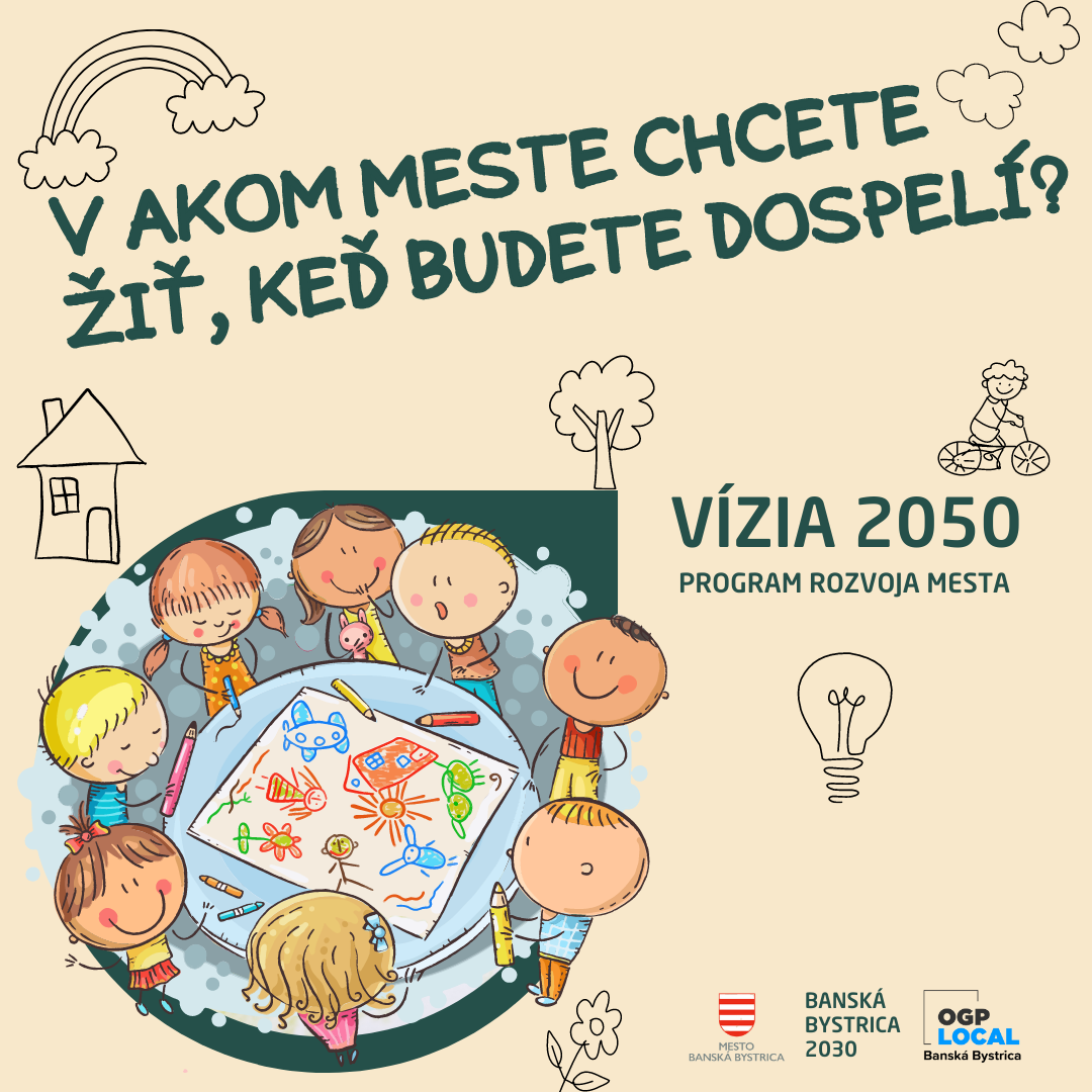 online verejné pripomienkovanie návrhov znení vízie Banskej Bystrice do roku 2050prostredníctvom online platformy Consider.it v období júl – august 23 na linku: https://viziabanskabystrica2050.consider.it/